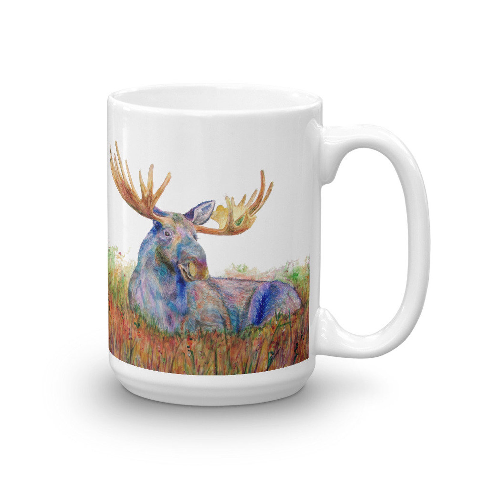 Im Büro trinke ich aus einem dünnwandigen Porzellanbecher von der verstorbenen Tante - braun mit weißen Hirschen drauf - da fällt mir ein, ich muss gleich mal zu den Elchen.