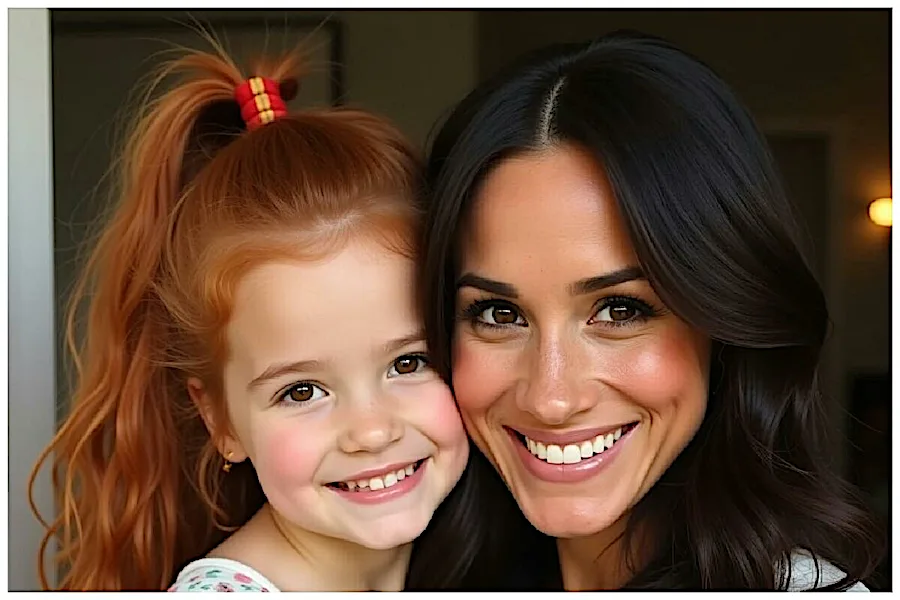 Da hat jemand Fotos vom Ehepaar Sussex der KI gegeben mit dem Auftrag, eine Tochter zu errechnen. Da Harry einen Bart trägt, hat z.B. Meghans Kinn gewonnen.